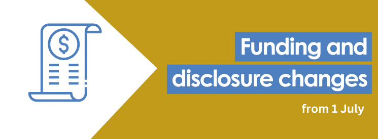 From 1 July 2024, legislative changes regarding the disclosure of political contributions, electoral expenditure and for political participants in an election come into effect as per the Electoral Amendment (Finance and Other Matters) Act 2023.